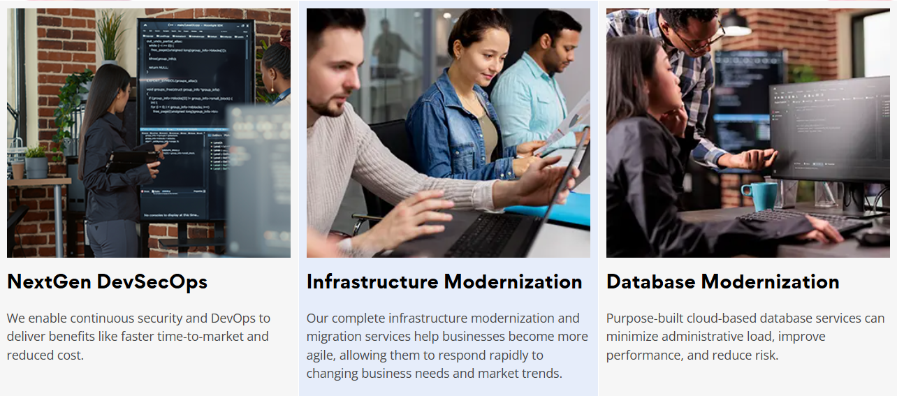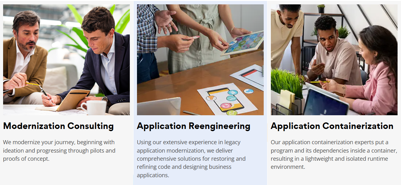 From initial action to strategic evolution, we’re committed to supporting you on your application modernization journey. Our specialized enterprise application modernization services are designed to help organizations transform their legacy systems to increase productivity and create opportunities for business innovation.